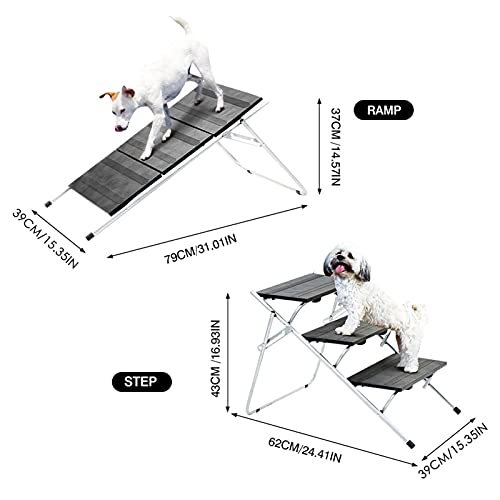4. Eenvoudig te gebruiken: bevestig de hondenklimladder stevig aan de gesppositie, 43 x 39 x 62 cm (ramp) 37 x 39 x 79 cm (trap).