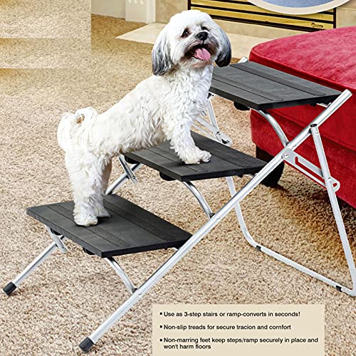 【Multifunctionele huisdiertrappen】 Nadat de trappen zijn geopend, kunnen ze als helling of treden worden gebruikt, zodat honden en huisdieren probleemloos van auto’s, hoogbedden, banken en andere plaatsen op en neer kunnen bewegen.